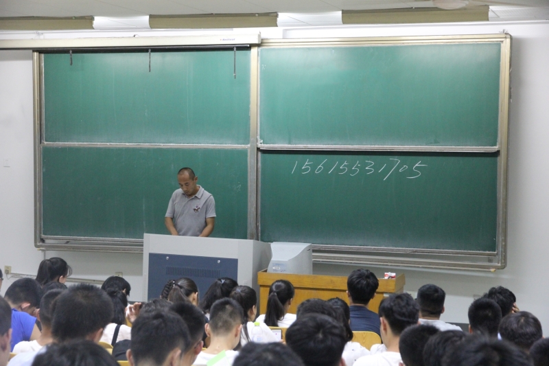会议伊始,崔鹏简单介绍自己并对2017级学生表示热烈的欢迎。接着,他详细介绍了近期学校和学院的工作安排,包括领取军训服和马扎、与教官见面、新生开学典礼及军训动员大会及军训后学院的集中入学教育等事项,并希望所有的同学都可以尽快的融入大学的生活中。紧接着崔鹏就学生的安全问题做出强调,尤其是诈骗、传销、网贷三项更是重点讲解。后面,他对学校的规章制度进行详细的阐述,对考试作弊和打架这两件事上更是重复强调后果的严重性,并以13届毕业生为正面教材,希望新生可以以他们为的榜样,在自己大学生涯结束的时候无一记过处分。最后由新生的带班学长向新生发放《学生手册》等相关学习材料。