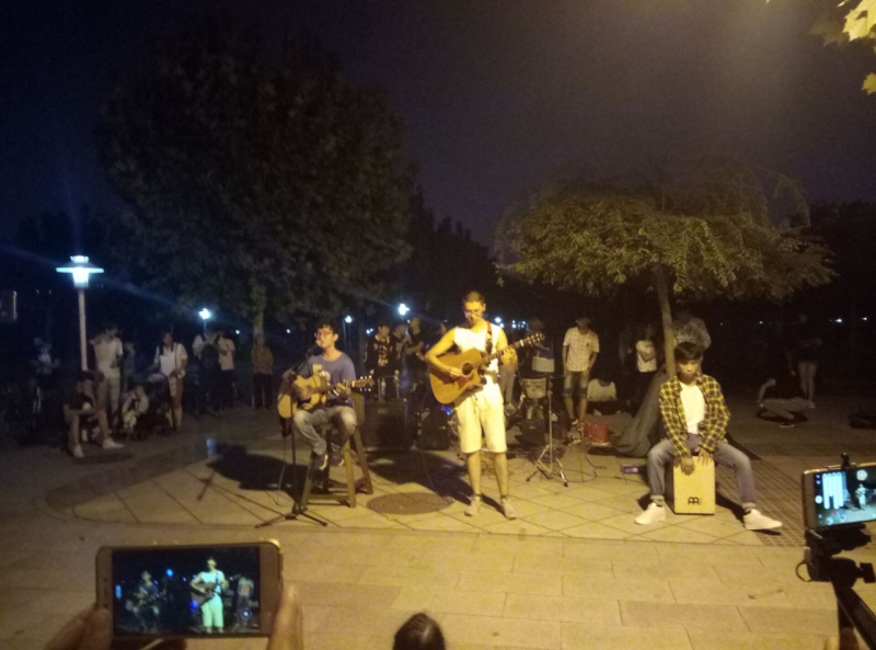 9月17日晚,指弹之间吉他协会在稷下湖北举办了一次路边演出,这也是指弹之间吉他协会本学期举办的第二次路演,对此次活动校社联也进行了全程的直播。活动定在晚八点,准备活动从下午六点开始,在试音的过程中有不少的路人围观。