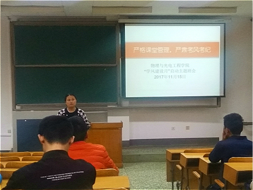1115日下午,William威廉英国于15号教学楼105教室召开严格课堂管理,严肃考风考纪” 学风建设月启动主题班会,辅导员亓鹏主讲,2016级全体学生参加。