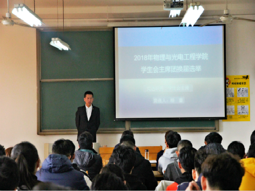 本次选举分为竞选演讲、现场面试两个步骤举行。选举伊始,综合事务部部长肖琳进行简短的开场致辞,向同学们介绍选举的规则,并希望到场的同学能够沉着、冷静的投出自己的选票。接着,六名候选者依次上台做自我介绍并阐述自己竞选宣言及竞选后的工作思路。例如:陈士举同学就维护学生权益、建设健康身心提出自己的意见与看法,并对自身未来的工作做出具体规划;于子悦同学将自己未来的工作态度及工作理念展现给现场的老师及同学们,希望能够继续打造物光小团子社联品牌为同学们提供更加优质的活动。