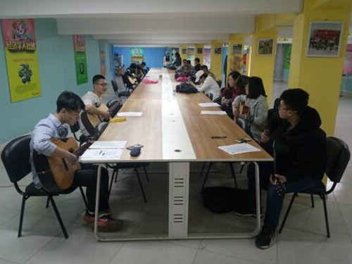 3月31日下午,指弹之间吉他协会首次变换教学地点,以社团文化园为交流场地,举行每周一度的会员教学活动。由会长王天让、各部部长、技术部全体人员及新闻部等其他部门人员出席此次活动。