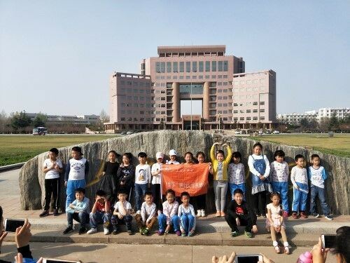 活动伊始,王翔正按照名单点名,并交代注意事项。随后,一行人按照原定路线开始参观。在鸿远楼至稷下湖的路上,小朋友们四处张望,并不时询问沿途树名和花名,家长们则拍照留念。“犁下”干事们时刻关注路况,保证每一个小朋友的安全。参观队伍行至小山凉亭休息,干事们陪小朋友观赏山腰鲜花,俯视稷下湖金鱼。