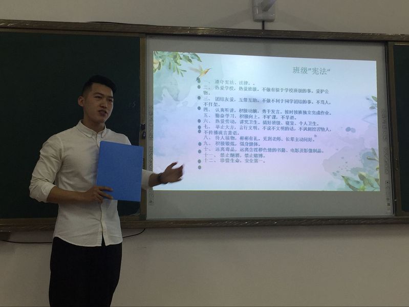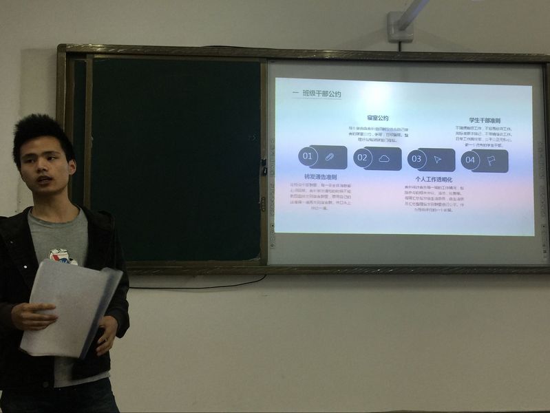 为更好地发挥各班级自我教育、自我管理、自我服务的职能,为学生成长成才创造良好环境,增强班级凝聚力和学生归属感,William威廉英国于5月11日下午在15号教学楼226教室举办“我们的约定”首届班级公约比赛。本次比赛以“争做五有人才、展现班级风采”为主题,院党总支副书记戴洁、团总支书记亓鹏、辅导员崔鹏及2014级优秀学生干部担任评委,2016、2017级全体班委参加,由亓鹏主持本次比赛。
