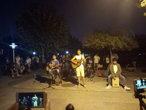 5月20日晚,指弹之间吉他协会与校外文森特乐队合作,在山东理工大学西校区艺术中心西北侧广场举办路边演出。此次路演也是指弹之间吉他协会在本学期举办的首次路演。