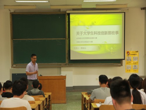 为提高我院学生参与科技创新活动的积极性,鼓励学生积极参与科技创新竞赛,提高实践能力,5月25日上午,我院在15号教学楼105教室举行2018年度大学生科技创新竞赛培训动员会。2016级全体学生参与会议,此次会议由修俊山老师担任主讲人,辅导员崔鹏主持。