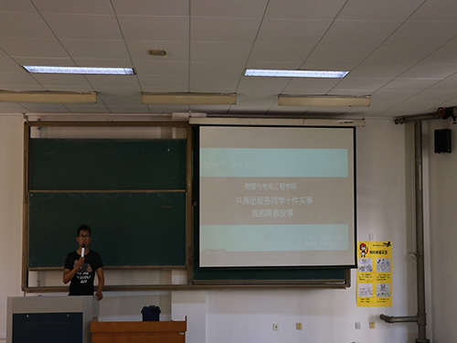 6月7号下午,我院在15号教学楼105教室举办共青团服务同学十件实事之“我的青春故事”首场报告会,本次报告会以“考研”为主题,2016级全体同学参加,14级优秀学生苗震、王娟娟、常美霞、王佳宁担任主讲,学生会副主席杨童担任主持。