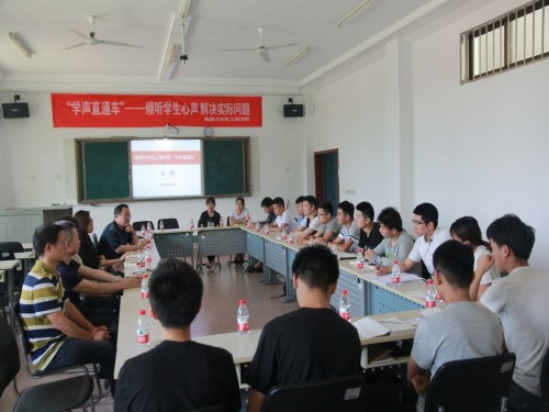 6月14日下午,我院在15号教学楼226教室举行第二期“学声直通车”,此项活动是我院2018年度共青团服务青年学生十件实事之一,旨在倾听学生心声,解决实际问题。党总支副书记戴洁、副院长刘瑞金、任课教师冯东太、孟庆宽、葛筱璐、武继江,辅导员崔鹏以及各班级学生代表参加此次活动。本期学声直通车主题为本学期专业课程学习,由党总支副书记戴洁主持。