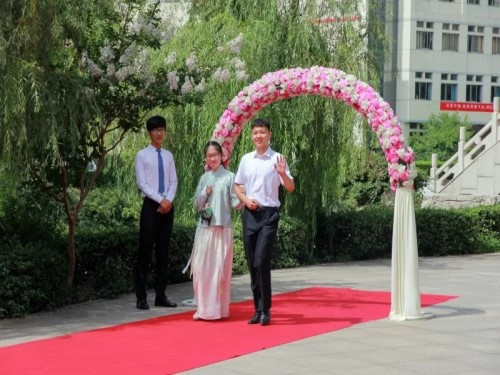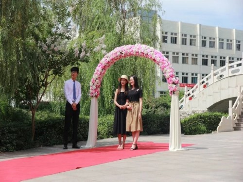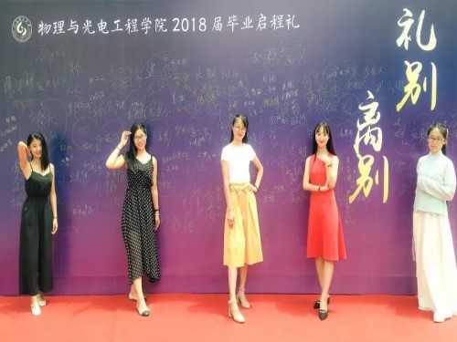 毕业生启程礼现场,毕业生携手好友、伴侣穿着盛装结伴踏上人生中的第一个红毯,自信地走向签名墙,写下名字,并合影留念,以庄重的方式告别大学生活,走上人生新征程!