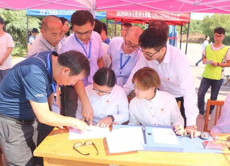 一是突出“全员化”。学院全体领导班子成员、系主任、2018级班级导师、辅导员均在报到现场热情接待新生和家长,耐心解答新生及家长疑惑;学院全体学生党员身着白衬衫,佩戴党徽,亮明身份,认真为新生办理报到手续,充分发挥学生党员的先锋模范带头作用。