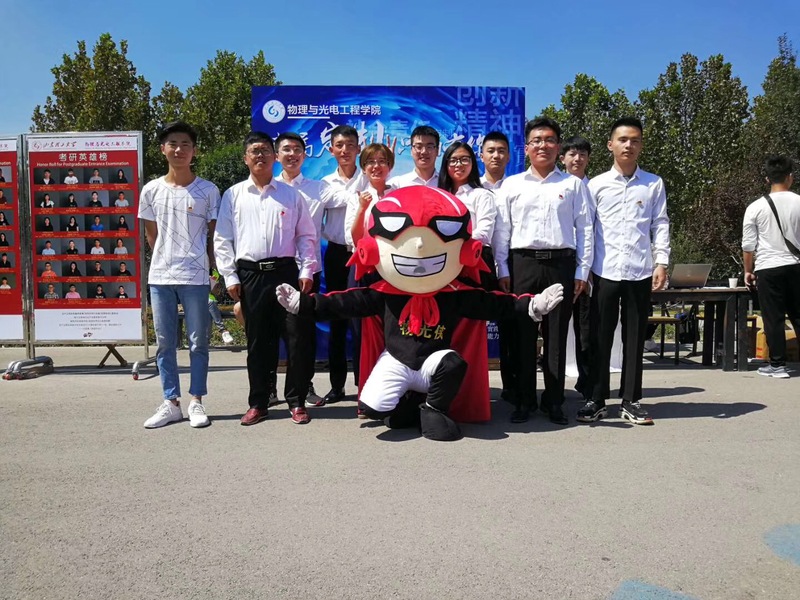 三是突出“特色化”。学院卡通形象——“物光侠”在迎新现场与新生互动并在背景墙前合影留念,充分展示了学院积极向上的正能量和蓬勃向上的青春活力。