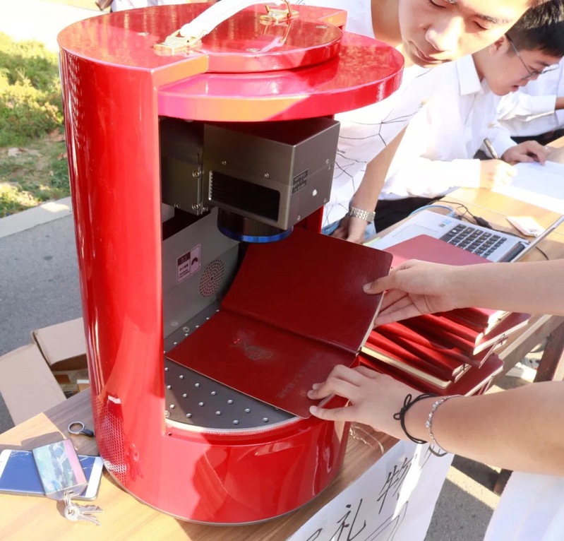 二是突出“专业化”、“专属化”。为展示专业特色,学院将实验仪器——激光标刻机搬至迎新报到点,现场制作并向全体新生赠送雕刻有学院名称、学生姓名以及学院卡通形象“物光侠”图案的专属定制笔记本,作为新生入学的纪念品,受到新生的喜爱。