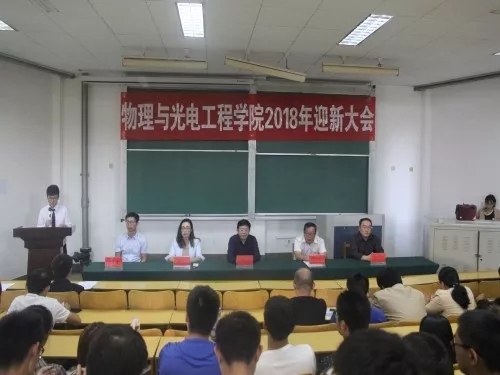 9月27日下午,我院在15号教学楼106教室举行2018级新生迎新大会。党总支书记常允起、院长董云会、党总支副书记戴洁、副院长刘瑞金、付圣贵,以及辅导员崔鹏、张起、各班班级导师、2018级全体新生参与此次会议,会议由学院党总支副书记戴洁主持。