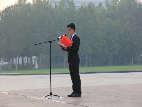 1015日早,我院于鸿远楼前举行升国旗仪式。此次升旗仪式的主题为初心与使命,责任与担当学院辅导员崔鹏、学生会全体成员以及2018级全体同学参与此次活动,张宇杰担任主持。