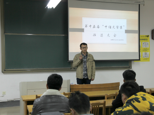 1119日晚,我院在15号楼342教室评选“第十五届‘十佳大学生’” 推荐候选人,刘珍、房鑫萌作为学院代表参与答辩,辅导员张起、学院各班级学生代表参与此次评选。