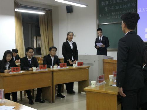 11月16日晚,我院在15号教学楼342教室举行第二届“物光杯”辩论赛。此次辩论赛共两场,辩论主题分别为“推动社会发展的主要力量是大众还是精英”与“自媒体时代,人们离真相越来越远还是越来越近”。此次辩论赛由我院学生会主席李志博、数学与统计学院学生会副主席宁斌、综合事务部部长肖琳、副部长吕琦、优秀辩手马育新、应诗媛担任评委,由光电1801班尤江山主持。