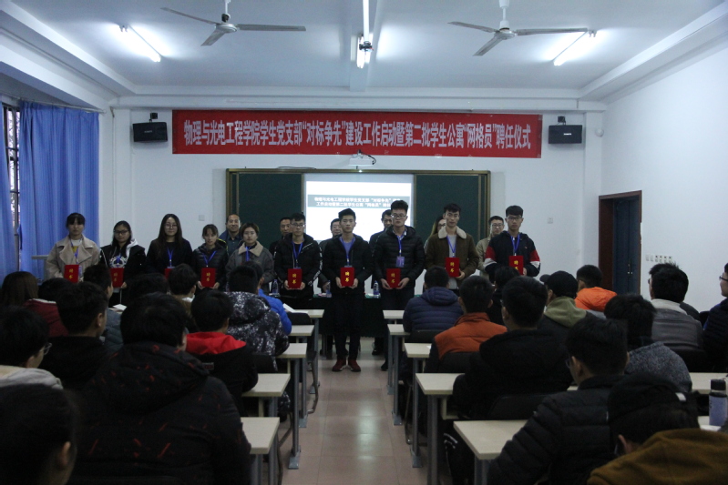 11月22日下午,学院于15号教学楼226会议室召开物理与光电工程学院学生党支部“对标争先”建设工作启动暨第二批学生公寓“网格员”聘任仪式,学院党总支书记常允起、校党委组织部副部长李涛、学生工作处副处长李志慧、院党总支副书记戴洁、院团总支崔鹏、张起老师以及学院全体学生公寓“网格员”、舍长参加此次会议,会议由戴洁主持。