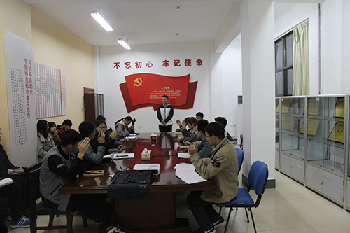 1130日下午,我院学生党支部于15号教学楼314会议室举行预备党员接收大会,辅导员崔鹏、辅导员张起,支部内全体学生党员、党员发展对象参会。支部大会围绕接收林杉、庄胜斌、华丹、刘博晔、陈士举、张帅六名党员发展对象为预备党员的问题进行讨论。
