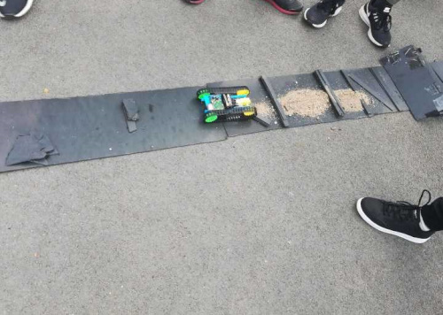 此活动由参赛人员自由组队,均三人一组。活动开始前,参赛人员领取坦克组装道具,技术部干事组装赛道。组装结束后,参赛人员展示组装作品,讲解作品优点。比赛正式开始,王玉全宣读此次比赛规则。此次活动为障碍计时赛,计算坦克从起点跑至终点所需时间,期间坦克需越过不同障碍,全程用时最短者获胜。若坦克不能越过障碍,则可以选择跳过,每跳过一次加时15秒。同学们按分组依次上场比赛,比赛现场氛围激烈。参赛人员改装高手颇多,多数人为坦克更换马达,将电池更换为充电宝,使坦克性能大大提升。更换马达的坦克无论是翻越山坡,还是穿越障碍都如履平地,并以最快速度冲过终点。虽然优秀者颇多,但仍有坦克于中途发生意外,不得不退出比赛,亦有参赛人员吸取上一组教训,于现场重组坦克,最终取得优秀成绩。此次比赛临近结束,王玉全宣布此次比赛一、二、三等奖获得者,活动参与者合影留念。