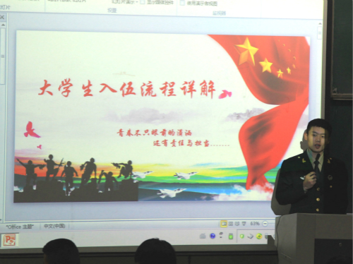 此次入伍宣传,为大学生应征入伍工作做广泛宣传和积极准备,切实提升学生国防意识,调动学生应征入伍的积极性。为学院征兵工作的展开奠定基础。
