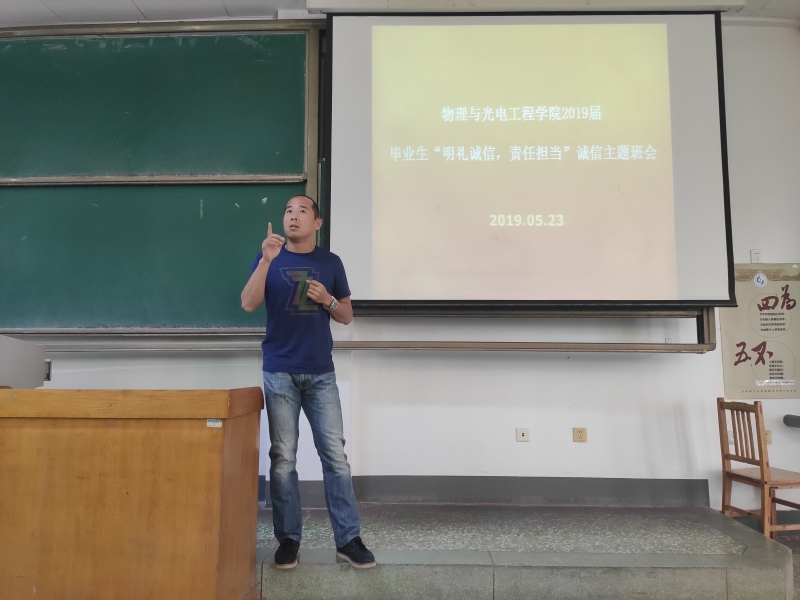 为进一步提高我院毕业生的诚信意识,增强毕业生的诚信还款意识、诚信就业意识和社会责任感,5月23日,我院与15号教学楼104教室开展毕业生诚信教育主题班会,会议由辅导员崔鹏主持,2019届全体毕业生参与。