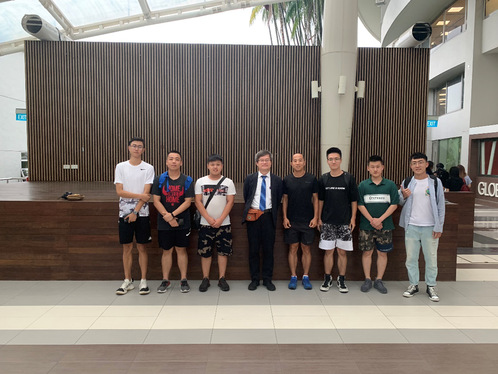 4.7月19日,上午在新加坡南洋理工大学教学楼举行师生交流座谈会,南洋理工大学本科生刘傲寒,研究生王辉、张小昆、张英卓,访问学者尹广超、孙美玲老师参加此次座谈会,座谈会围绕南洋理工大学校园文化、办学理念、学风建设,学校学生会、社团发展以及国内本科生、研究生如何申请南洋理工大学留学等问题进行交流和讨论。下午,在南洋理工大学师生的带领下,参观了学校体育馆和各运动场,并应邀组织参加了与南洋理工大学师生的 “篮球友谊赛”,进一步促进了交流和学习,感受了南洋理工大学的运动氛围。