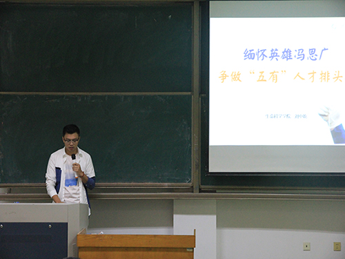 亓鹏老师指出,冯思广是我校 “五有人才”培育的典型代表,是我校培养的英雄,是我们全体同学们的榜样,他那种视死如归、英勇无畏、对人民大忠大爱的精神永远值得我们学习。