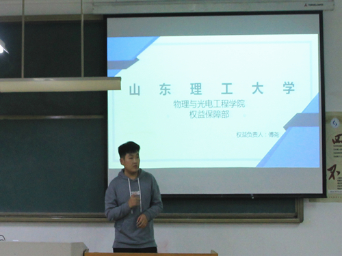 会议伊始,李素田首先就学院卡通人物“物光侠”的功能及作用向同学们作详细介绍,以便同学们能够认清维权、学会维权,为大家日常寻物找主提供了可靠途径。随后,她向大家展示部门的多个维权案例,例如排查个别教室钟表不准、自习室门口张贴教室使用安排表等,并且就工作计划及进步方向做简单介绍。接下来,她要求同学们以小组为单位就日常学习及生活中所遇到的问题进行讨论并派代表进行总结发言。