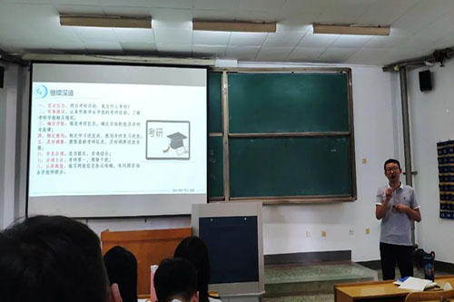 其中,在继续深造方面,他从坚定信念、听取建议、确定学校、制定规划、及时调整、作息合理、分清主次、认真填报等八个方面依次分析,耐心讲解,并通过结合实际事例,详细的为同学讲明了考研的相关事宜。在就业方面,他从找准定位,拓宽知识面、术业有专攻、积极听取建议,认真考取证书、积极参加竞赛、重视课外实习展开讲述,告知同学们提前准备,不留遗憾。此外,老师还带领同学们详细了解了考取公务员与教师编、自主创业、子承父业的过程。
