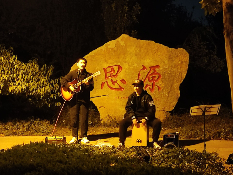 10月10日晚,我院指弹之间吉他协会在我校第三体育场思源石举办音乐路演活动,活动由指弹之间协会会长程俊杰策划及主持,协会部分人员参加此次活动。
