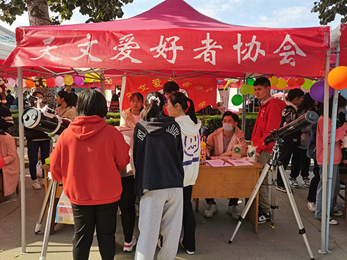 为使更多天文爱好者能够有自我展示和发展的平台,推动我校天文爱好者协会的发展,我院天文爱好者协会于10月25日在我校大学生艺术广场参加2020年社团集中纳新暨社团文化节开幕式活动。