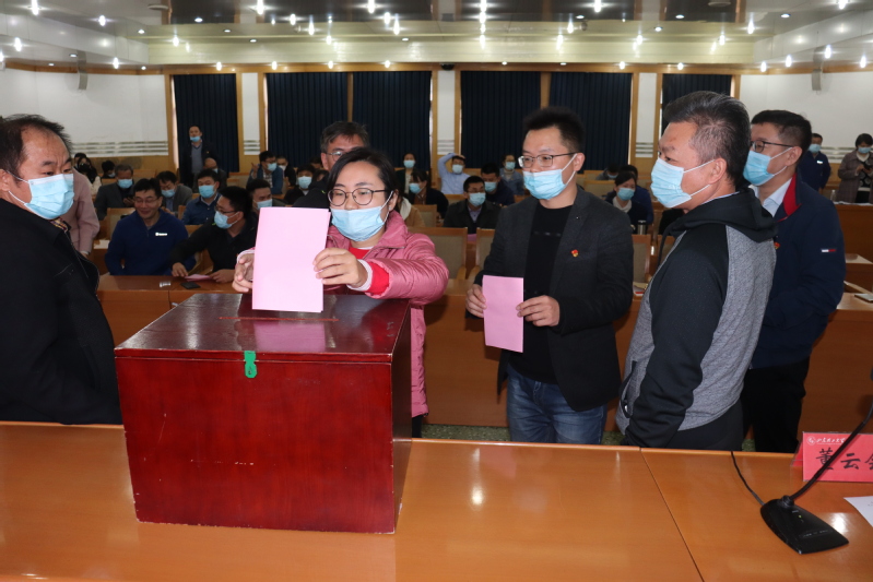大会审议通过了董云会同志代表上一届党总支委员会所作的工作报告,审议通过了党总支委员会委员候选人名单以及大会选举办法,全体与会党员按照无记名投票的方式选举产生了新一届党总支委员会委员。经过选举,董云会、付圣贵、范小平、孙玉萍、满忠胜5名同志当选新一届党总支委员会委员。大会在圆满完成各项议程后,在雄壮的《国际歌》声中闭幕。