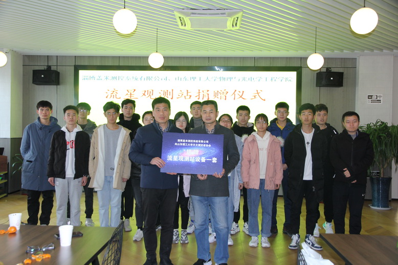 12月6日下午,淄博盖米测控系统有限公司向我院天文爱好者协会捐赠流星观测设备仪式在盖米公司会议室举行。公司董事长石清海、学院党总支副书记范小平出席,天文爱好者协会会员代表20余人参加。