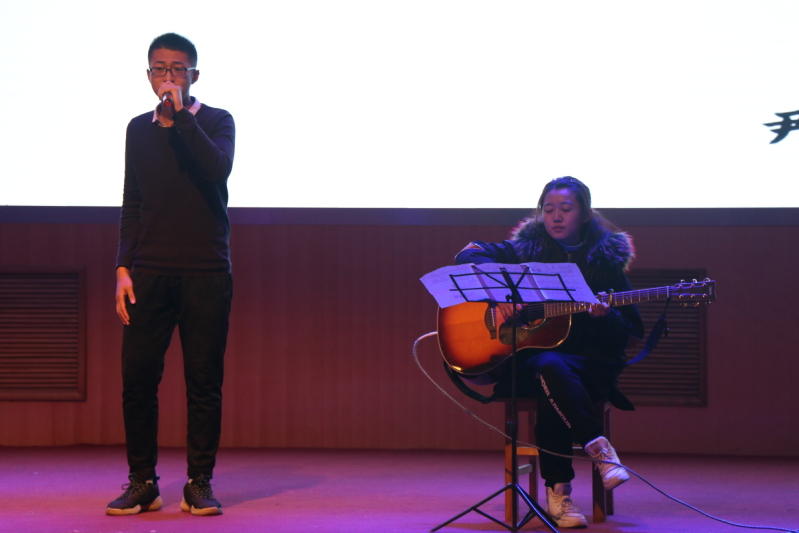演出开始前,各学院社团联合会成员陆续到场,准备观看节目。负责晚会的工作人员与各社团演出人员在后台有序地进行准备工作。演出伊始,主持人上台致辞,预祝此次活动圆满成功。随着晚会开始,各社团节目相继上场,现场氛围热烈。演出进行至中期,首先由我院指弹之间吉他协会的成员张曦月,张有岐为大家带来《写给黄淮》。随着吉他的旋律响起,优美的歌声随之而出,伴随着观众的掌声指弹之间吉他协会的成员尹子豪,贾若冰为大家演唱《蜗牛》。台下掌声雷动。演出最后,联谊晚会在轻松愉快的氛围里顺利结束,观众有序离场,参演人员及负责人于台前合影留念。