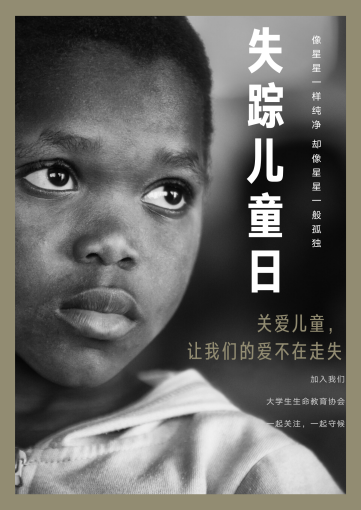 国际儿童失踪日的建立带着沉重和泪水,儿童失踪无外乎主观和客观两个因素,主观走失,离家出走,监护人疏忽;客观分离,人贩拐卖,父母送养。如何让失踪儿童找到回家的希望,最好的保护是来自家人的关注,而本次活动的开展恰好为家中有年幼孩童的大学生提了一个醒,去关注弟弟妹妹的成长以及平时的行踪,防范犯罪分子,让孩童健康成长,让悲剧不在发生,让爱不再走失。