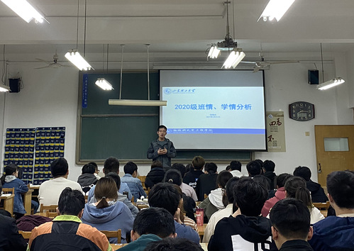 2020级主题班会,张继武重点分析了过去一个学期各班期末考试成绩,指出不同专业不同班级之间已出现较大差异。