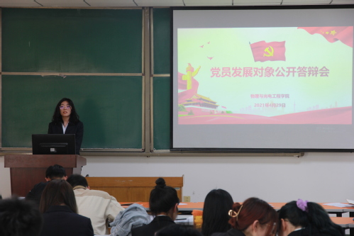 4月29日下午,我院于15号教学楼335教室举行学生党员发展对象公开答辩会。学院学生党支部书记亓鹏、支部全体党员、预备党员参加此次辩论会,答辩会由学生党支部副书记张起主持。