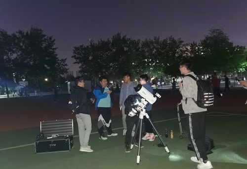 为丰富学生在校学生的业余生活,提高学生对天文的关注与兴趣,天文爱好者协会提供了一个观测星空的平台,于5月7日晚举办天文观测活动。此次活动由天文爱好者协会负责人闫泽青主持,全体协会成员参与此次活动。