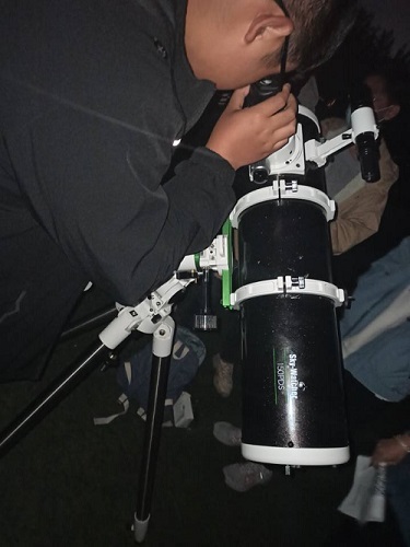 活动开始前,协会成员在第三餐厅南面桥边布置用于天文观测的天文器械,对天文观测设备进行调试,闫泽青集结协会参与活动的成员,通知此次活动的相关事宜以及注意事项。待天文仪器调试完成后,活动正式开始。在工作人员的指导下,同学们有秩序地排队观看并在观看完毕后及时让给下一位同学,协会内各成员积极参加观测。此次活动吸引了大批对天文感兴趣的同学,同学们由好奇而深入学习,了解到更多天文的相关知识。观测结束后,同学们互相交流自己观看后的体验,通过分享不断学习。