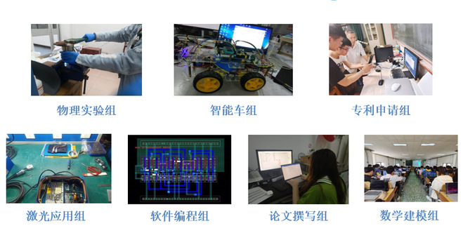 每种竞赛都有自己的特点,物理本1802班成立了“物理实验组”、“智能车组”、“数学建模组”、“激光应用组”、“软件编程组”、“论文撰写组”、“专利申请组”七个小组。每个同学根据自己的兴趣和特长选定小组,形成了班级“人人有团队,队队有目标”的科技创新特色班集体创建模式。