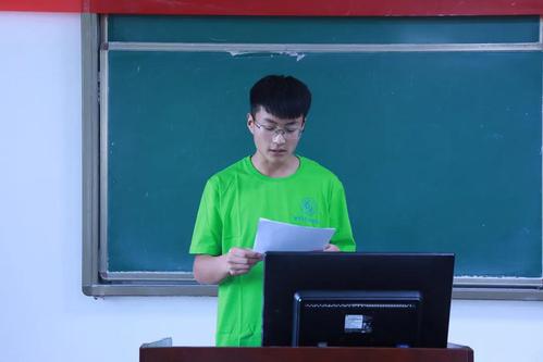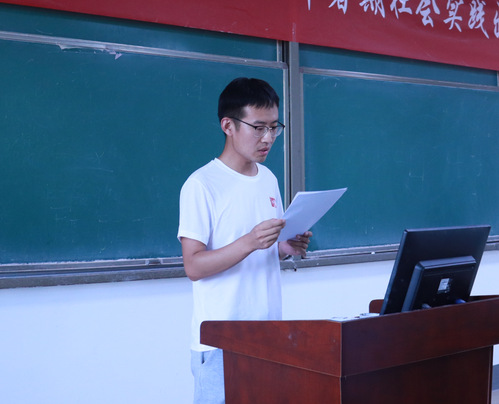 紧接着,实践团学生代表杜成龙进行发言。他阐述了社会实践在大学生活中的重要性,希望同学们敢于吃苦,不怕困难,发扬“奉献、友爱、互助、进步”的志愿者精神。
