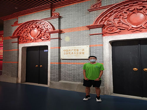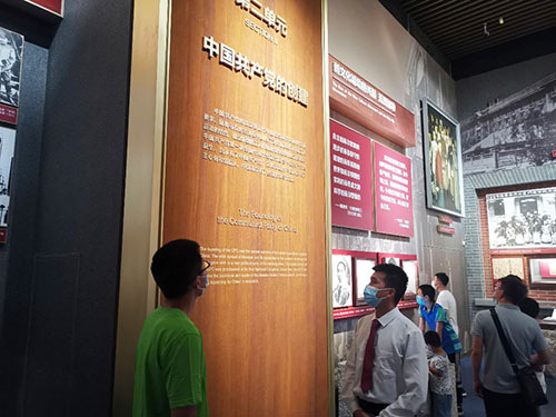 “中国共产党的成立,是中华民族伟大复兴史上开天辟地的大事件。在近代中国社会矛盾的剧烈冲突中,在中国人民反抗封建统治和外来侵略的激烈斗争中,在马克思列宁主义同中国工人运动的结合过程中,中国共产党应运而生。”全体成员听取讲解介绍,仔细观看了解有关情况,认真参观、久久伫立。