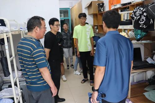 为进一步了解我院2021级新生情况,让新生充分感受到学院的温暖和关心,帮助他们更好地适应校园生活,9月5日下午,学院党委书记董云会、院长付圣贵、党委副书记范小平、院长助理满忠胜,带领学生工作办公室辅导员走访新生宿舍,亲切询问新生情况,及时了解新生的生活动态,把握新生对宿舍环境的适应情况。