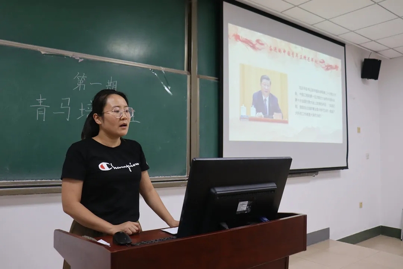 为加强青年学生对百年党史的理论认同、实践认同和情感认同,引领身边的同学进一步坚定跟党走中国特色社会主义道路的信心和决心,传承红色基因,传播青春力量。我院于9月14日在15号教学楼335教室举行第一期青马工程系列特色活动。会议由辅导员王芳主持,全体青马学员参加会议。