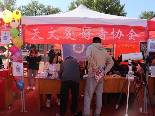 活动开始前,天文爱好者协会进行了充分地准备,提前悬挂了横幅和宣传标语,并准备了抽奖活动和小零食,社团还安排了轮值人员确保每时每刻都有人员为同学们提供最好的服务,同时协会会长闫泽青统筹策划、会长助理张韫东全程值守。社团还将两台天文望远镜架设在了现场,吸引了许多同学的兴趣。对于有意了解或加入社团的同学可以在扫码加入QQ群并填写天文爱好者协会会员登记表后参与抽奖活动,奖励分为一、二、三等奖。