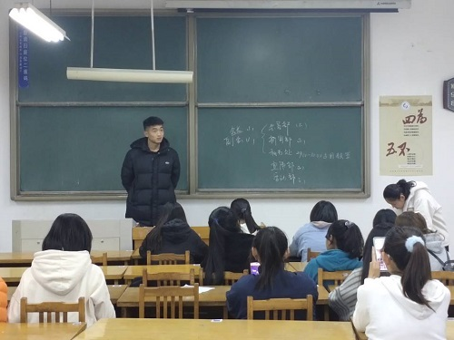活动开始前,王萌组织协会全体成员到场。活动伊始,王萌介绍了参与此次活动的工作人员并对新成员表示热烈欢迎。活动期间,王萌在黑板上写下跆风跆拳道协会的组成部门,详细解释各部门职责,鼓励新成员积极报名参选。活动最后,王萌介绍未来展望并与各部门工作人员为新成员答疑解惑,活动结束。