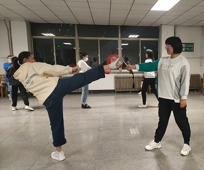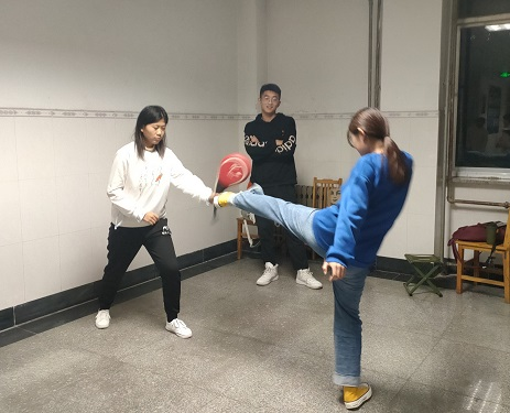 活动开始前,王萌组织协会全体成员到场。活动伊始,由成员自由分组进行比赛热身,随后开始正式跆拳道比赛,协会成员王晨负责指导纠正协会其他成员的跆拳道动作。活动最后,王萌总结本次交流赛的成果,活动结束。