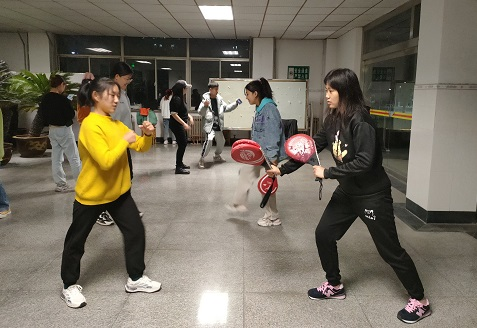 活动开始前,王萌组织协会全体成员到场。活动伊始,由成员自由分组进行比赛热身,随后跆拳道比赛正式开始。活动期间,协会成员王晨负责教学跆拳道新动作、指导纠正协会其他成员动作,两人一组进行交流比赛。活动最后,王萌总结本次交流赛的成果,活动结束。