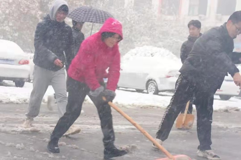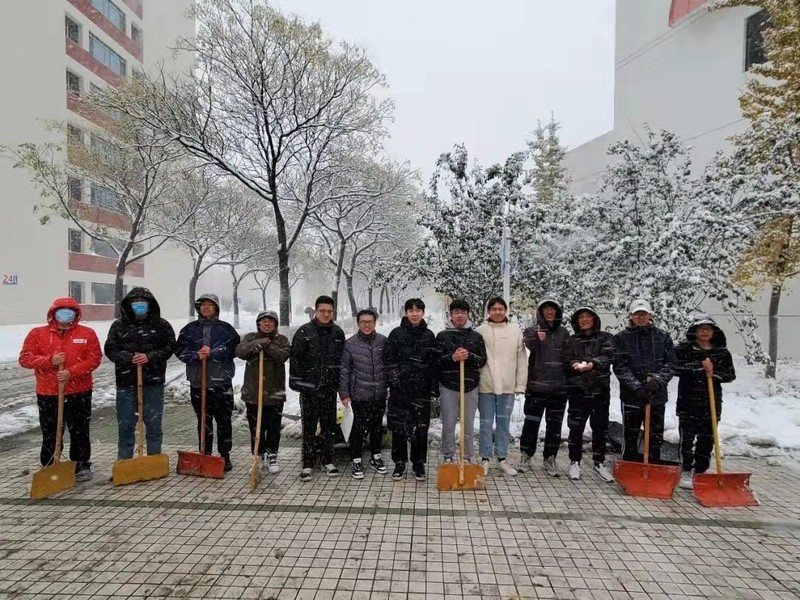 立冬恰逢初雪,一场突如其来的大雪将15号教学楼前装点的一片银装素裹。为方便师生出行,降低因积雪带来的安全隐患,11月7日下午,由我院学生会牵头组织了本次冬日除雪活动,学院党委副书记、院长付圣贵,党委副书记范小平,辅导员及学生党员、学生会全体成员参加。