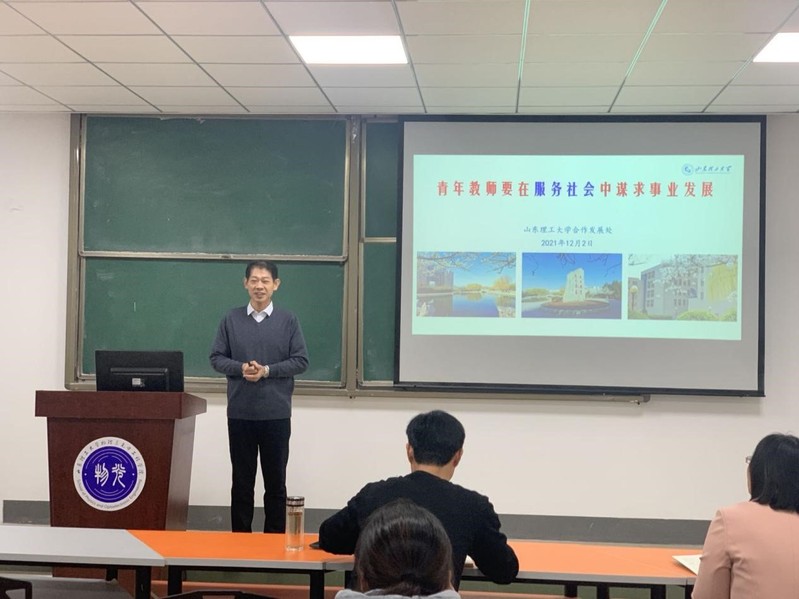 最后,李涛从“我们有什么?我们可以做什么?服务社会与企业的十条建议”等三个方面阐述了青年教师应如何做好服务企业工作,并鼓励大家当好企业的“开发科科长”、山理工的“办事处主任”、山理工的“形象代言人”,在服务社会中实现个人的成长与进步。