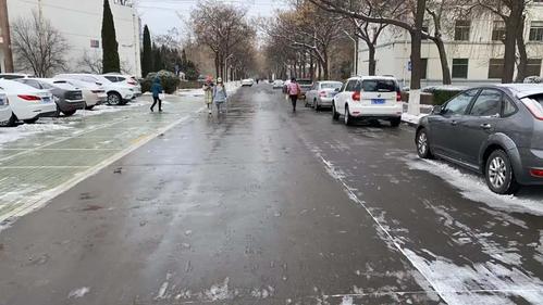 志愿者们不畏严寒,挥舞雪铲,经过清扫,道路上的积雪基本清理干净,为师生创设了出行方便、安全通畅的道路。